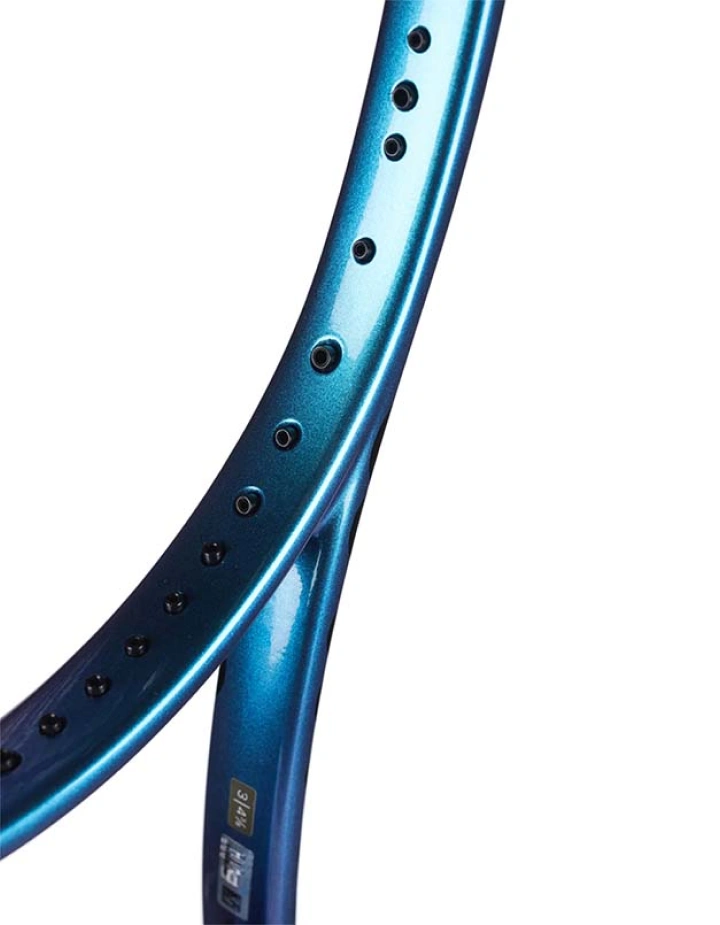 از همان نگاه اول، Ultra Pro v4 تفاوت خودش را با مدلهای دیگر نشان میدهد. رنگ آبی متالیک آن بسیار چشمنواز است و در کنار طراحی ساده و حرفهای، حس مدرنیته و قدرت را القا میکند. فریم باریک با پهنای ثابت ۲۰.۶ میلیمتر نشاندهندهی آن است که این راکت بیش از آنکه بخواهد بازیکن را با قدرت خام شگفتزده کند، قصد دارد دقت و حس ضربه را به سطحی بالا برساند.